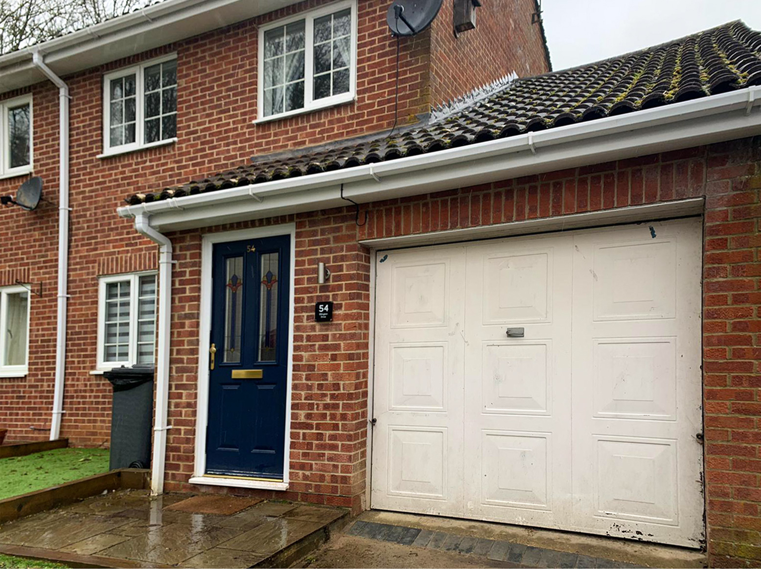 Hormann 2001 Canopy Steel Up & Over Vertically Ribbed Garage Door & Truedor TR1W Composite Entrance Door Finished in Slate Grey & Installed in Basingstoke By Our New Malden Branch.